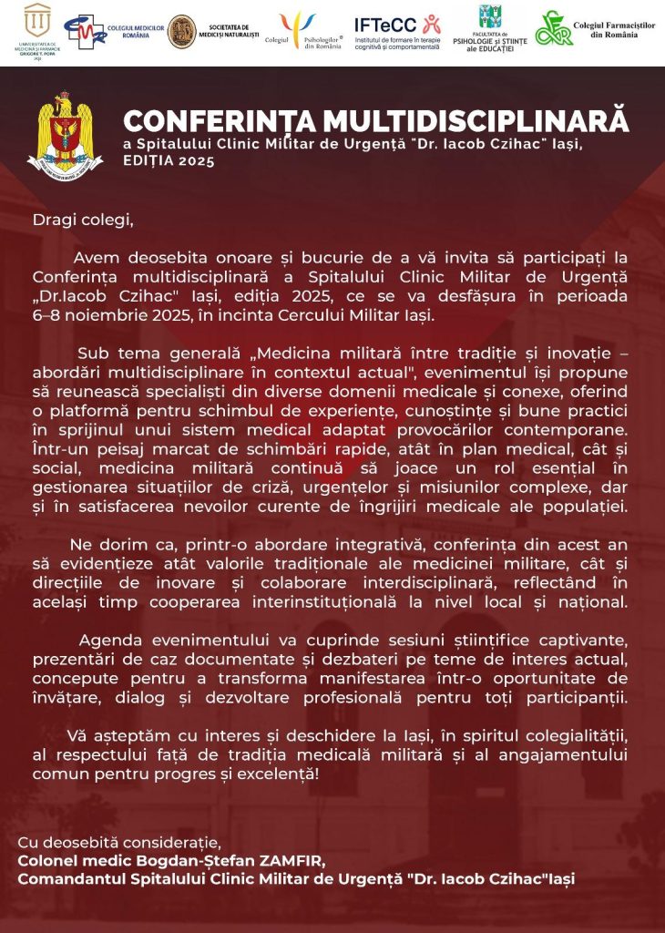 a Spitalului Clinic Militar de Urgență "Dr. Iacob Czihac" Iași, Ediția 2025
