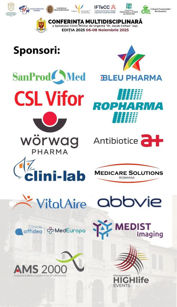 Descoperă partenerii Conferinței Multidisciplinare a Spitalului Clinic Militar de Urgență „Dr. Iacob Czihac” Iași, Ediția 2025